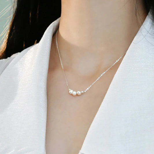 Genuine White Triple Freshwater Pearl Eternity Necklace in Silver