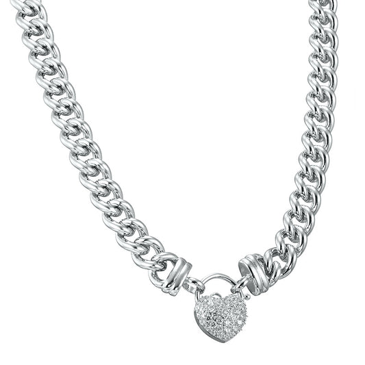 925 Sterling Silver Plated Euro Chain Necklace Featuring a Simulated Diamond Locket - USA Made